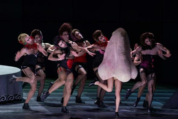 Barrie Kosky el director de escena también se aplica y se ajusta a lo que sabe hacer. Y lo hace bien creando imágenes atractivas. Imágenes que, si no fuera por los sobretítulos que hay que leer para poder enterarse de lo que dicen, mantienen la mirada en el escenario cada vez que se abre el telón. Un telón que se abre y se cierra muchas veces, pues su propuesta está trabajada en escenas.