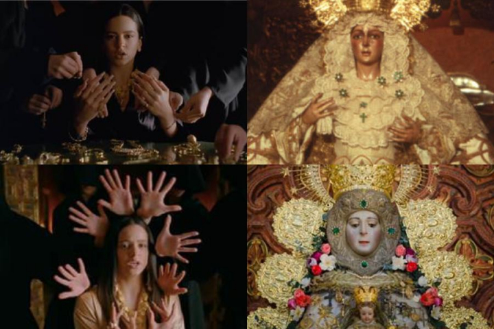 El reflejo de la iconografía sacra se ve también en otros videoclips como el de Pienso en tu mirá, donde vuelve a evocar a otra de las vírgenes de Gloria más populares del imaginario español: la Virgen del Rocío con las manos que se le colocan alrededor de su cabeza a modo de corona. En otro frame de este mismo clip, la catalana aparece de negro y con las manos situadas a su frente, como si de una dolorosa se tratara. Algunos la compararon también con la Esperanza Macarena de la Semana Santa de Sevilla.