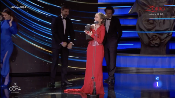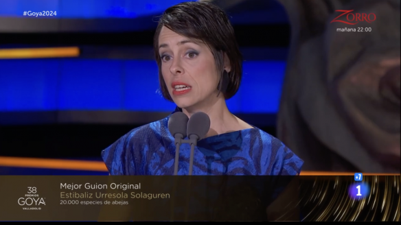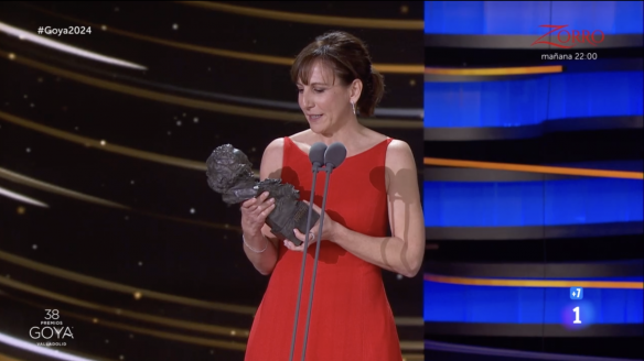 Estíbaliz Urresola ha recogido el galardón al segundo galardón de la noche, tras el de Mejor dirección novel. "Así voy a poder agradecer a todos los que se me han olvidado antes", ha empezado diciendo. "Tiene que ver con todas las familias que han compartido conmigo su intimidad y que me han ayudado a plasmar a esta familia que pasa junta una transición", ha recordado.