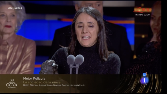 Con cada nuevo premio que ganaba La sociedad de la nieve más lágrimas caían por el rostro de Juan Antonio Bayona. La película sobre la tragedia de Los Andes ha arrasado en los Goya 2024 con doce premios, entre ellos los de Mejor película y Mejor dirección. Es la primera vez que el cineasta se lleva el premio gordo y ha estado a punto de hacer pleno ya que optaba a trece galardones. Por Uxía Prieto.