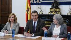Pedro Sánchez y la ministra de Educación, Pilar Alegría, se han reunido este jueves con la comisión permanente del Consejo Escolar del Estado para presentar el proyecto del plan de refuerzo en comprensión lectora y matemáticas y cómo afrontar la restricción de los móviles en las aulas.