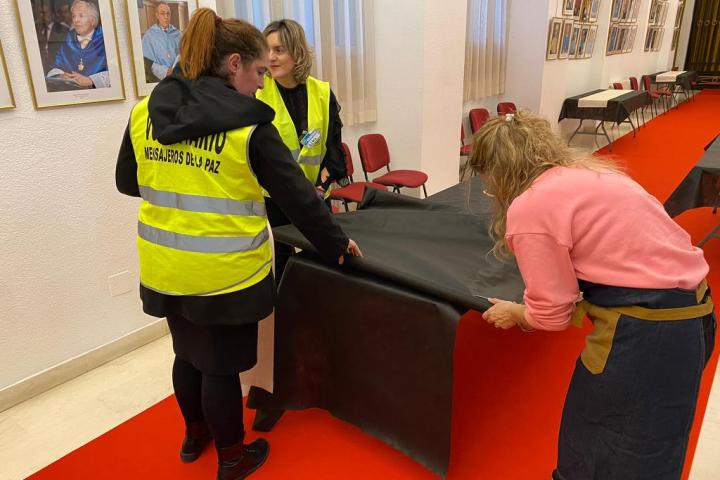 "Es verdad que, quizás, se necesita más en Teatro Real porque hay más pasillos, en San Antón está todo más cercano", comenta. "Entonces, 25 aquí [en el templo] y 30, allí, seguro", concluye. Todo ello para un evento que llevan preparando desde hace meses y que, según la coordinadora del voluntariado, se prepara "con cariño y amor".