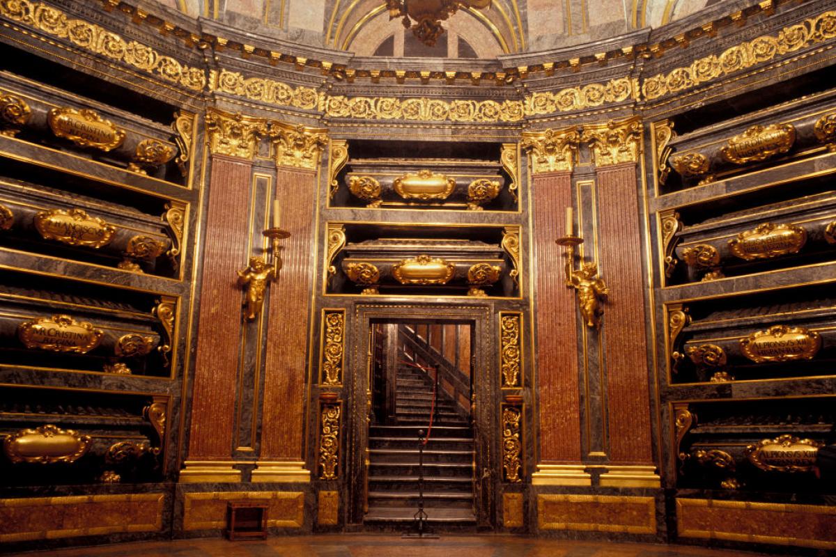 El Real Monasterio de El Escorial, situado en el norte de Madrid, se edificó con la idea de servir de sepulcro para los reyes y familiares de la dinastía Habsburgo. En 1573, Felipe II hizo trasladar al templo los restos de su padre, Carlos I y así comenzó la tradición de enterrar a los reyes de España en el denominado Panteón Real.