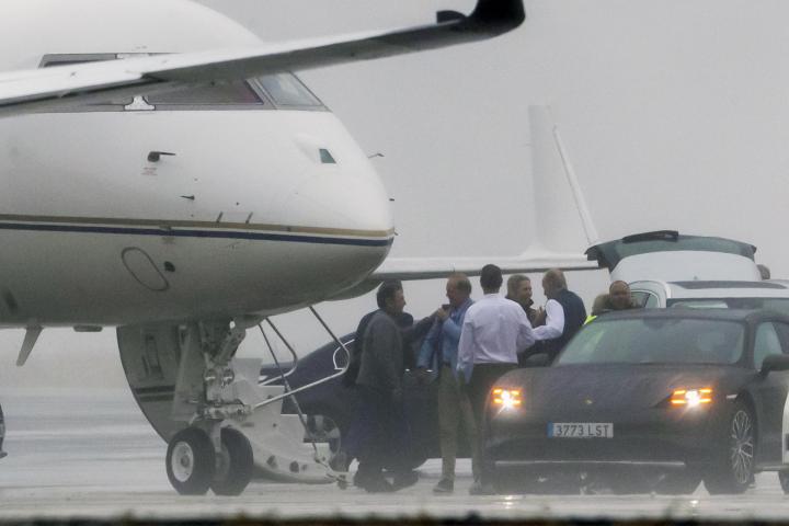 Por su parte, Elena, que llegó el sábado a Galicia, se desplazó a otro avión privado que estaba situado al lado del de su padre, despegando minutos después, mientras que Campos abandonó de nuevo el aeropuerto con su coche.