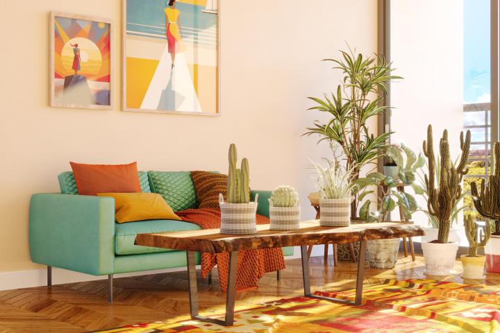 Las claves del maximalismo están en los colores, las texturas y llenar las casas de objetos de decoración como cuadros, plantas o estanterías que se adapten a las distintas tendencias, como el conocido maximalismo mediterráneo, que apuesta por la cerámica colorida y llamativa entre otros muchos elementos.