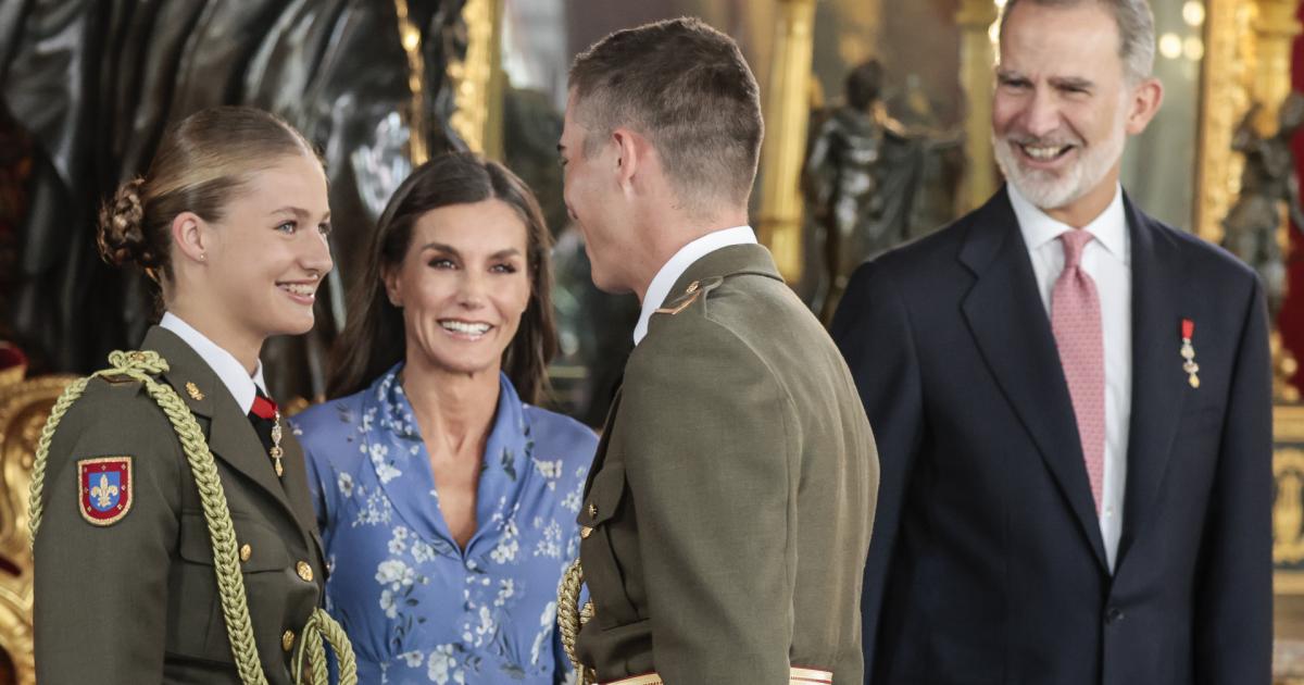 Todo ello está presidido por la familia real. Año tras año los reyes Felipe y Letizia siguen el acto castrense desde la tribuna real. Es habitual que les acompañen sus hijas Leonor y Sofía salvo cuando sus estudios han evitado su presencia en el 12 de octubre. Además, en la Fiesta Nacional de 2025 hay una novedad al producirse el debut de la infanta Sofía en la recepción que se ofrece en el Palacio Real a autoridades y personalidades.