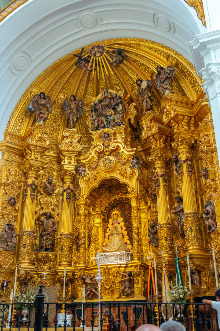 La virgen del Rocío que este templo acoge llegó a él un domingo 13 de abril de 1969, un día después de que el entonces obispo de Huelva bendijera el templo.