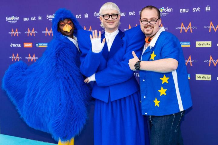 Excéntrico y contestatario, Joost no dudó este jueves en cubrirse la cara con una bandera cuando la representante israelí Eden Golan tomó la palabra durante la rueda de prensa con los candidatos clasificados para la gran final.