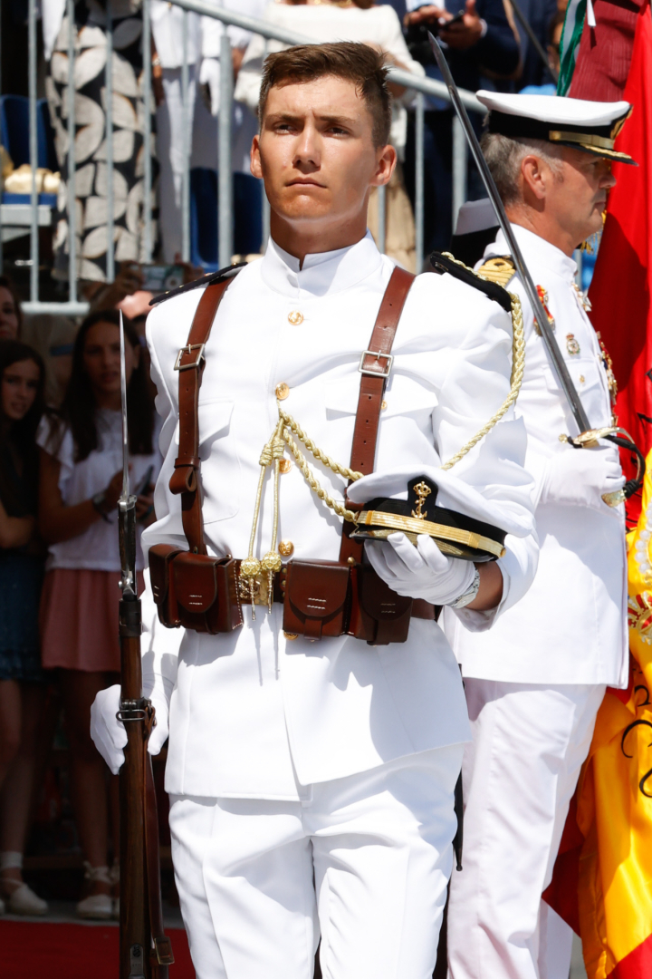 Los jóvenes coincidieron hace unos días, cuando la princesa Leonor acompañó a los reyes a la entrega de despachos en la que fue su primera visita a la escuela. López-Quesada, ya convertido en cadete después de su primer año en la Armada, juró bandera ante el rey y la emocionada mirada de sus padres, que no pudieron contener las lágrimas.