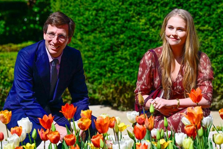 Después de varias semanas en las que estaba la duda sobre si Amalia de Holanda inauguraría el jardín de tulipanes que donó a la ciudad de Madrid después de vivir un año en la capital, la heredera de los Países Bajos ha sorprendido este lunes en un acto junto a José Luis Martínez Almeida.