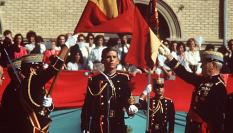 Leonor está siguiendo los mismos pasos que dio su padre hace ya casi cuatro décadas. El 11 de octubre de 1985 el que, entonces, fuera príncipe de Asturias también se comprometió a defender el país. Sin embargo, él tuvo una ceremonia individual, no con el resto de compañeros de promoción, como sí ha hecho su hija.
