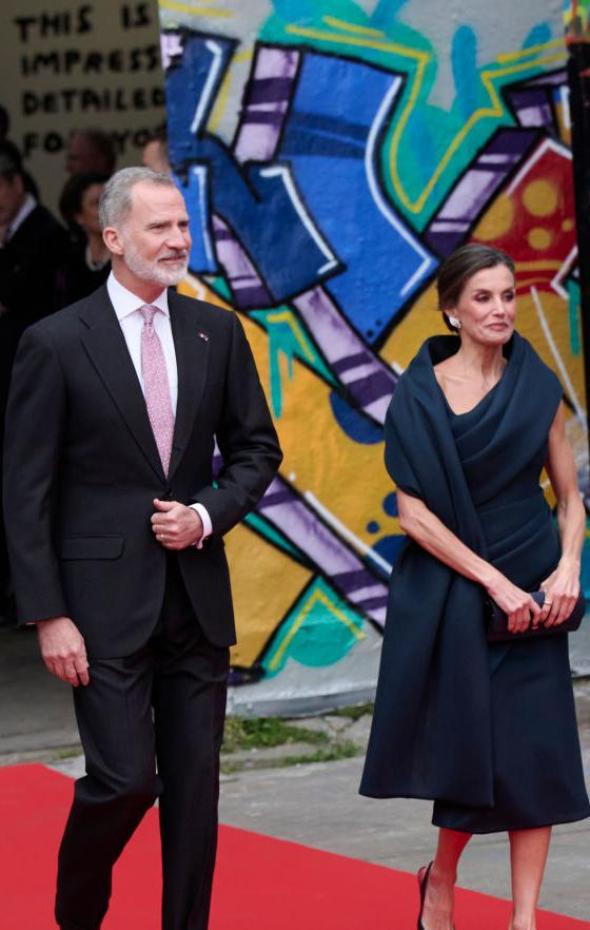 La cita dio para muchos titulares, muchos de ellos enfocados hacia el estilismo de doña Letizia, puesto que llevó un vestido casi escultórico de Mohamed Benchellal, un diseñador holandés de origen marroquí.