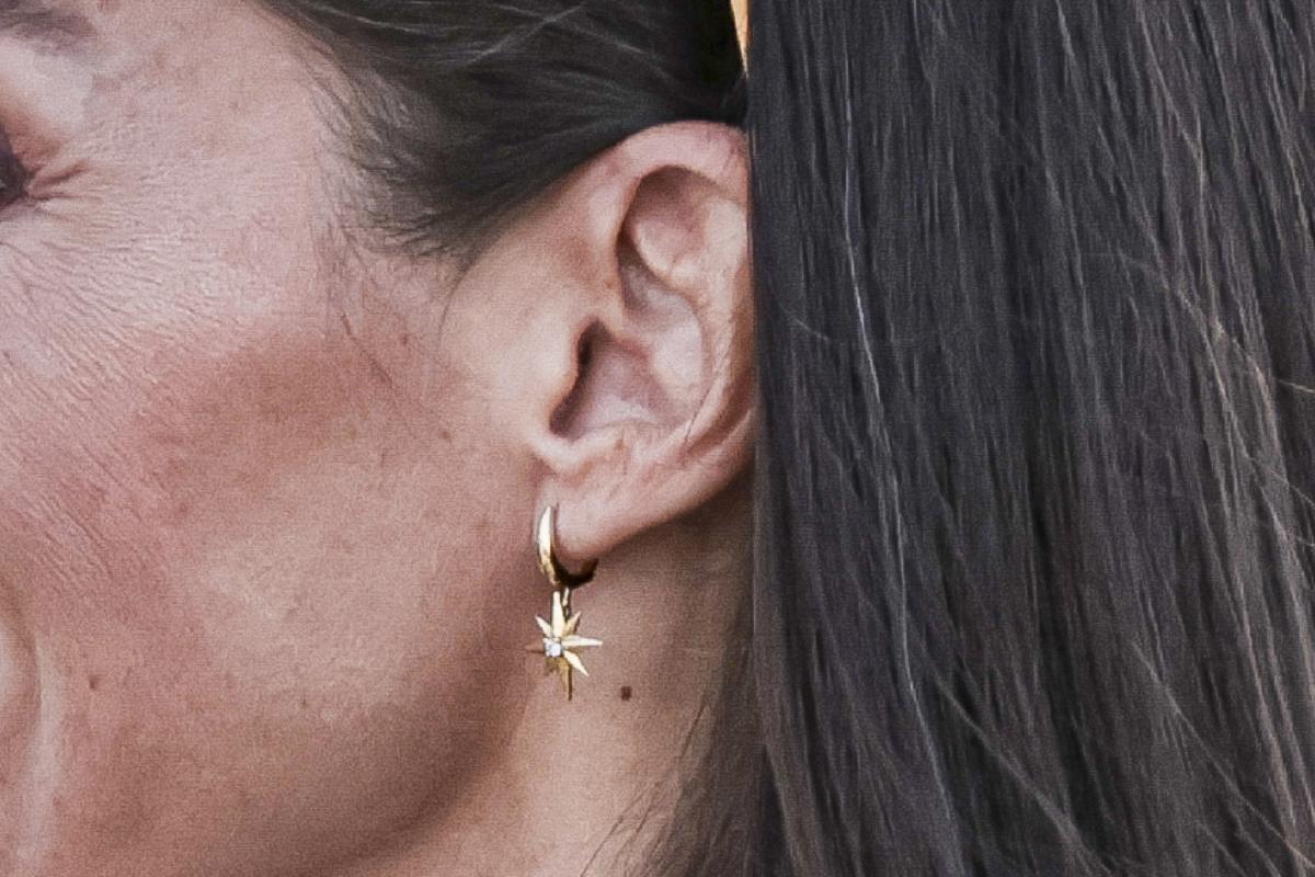 Para completar el look, Letizia ha lucido unos pendientes en forma de estrella de ocho picos con un disimulado diamante en el centro de la misma.