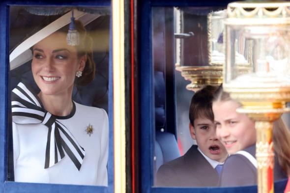 La princesa ha estado acompañada en todo momento de sus tres hijos: Charlotte, Louis y George. Ha estado junto a ellos en la carroza que los ha paseado por la avenida The Mall y los cuatro han seguido el desfile desde la ventana de la que antaño fue la oficina del duque de Wellington.