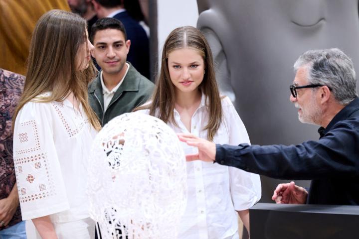 La princesa de Asturias y la infanta Sofía visitaron el taller del escultor en la primera jornada de los Premios Princesa de Girona.