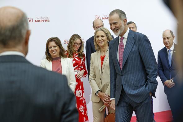 Ha sido en la celebración del 50º aniversario de la Fundación Mapfre, que el rey preside y del que la infanta Elena es la directora de Proyectos Sociales y Culturales, cuando Felipe VI se ha saltado el protocolo para tener un gesto de complicidad con su hermana.