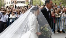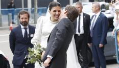 Lo ha hecho, según ha contado Aguirre a la prensa, desde primera fila. Al lado de la madre de la novia, Beatriz Moreno y de Borbón, que es la que comparte parentesco con la familia real.