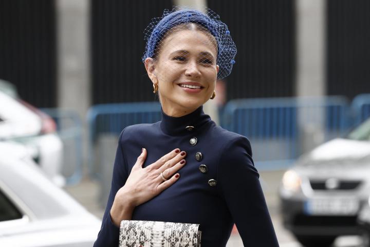Ha sido Carla Pereyra, la esposa del actual entrenador del club Atlético de Madrid, Diego Pablo Simeone. Esta ha acudido al evento luciendo un traje azul que ha complementado con un tocado del mismo color, aunque en un tono más claro.