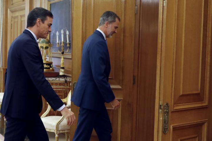 Tras el cambio de gobierno por la moción de censura de Sánchez contra Rajoy, la siguiente cita electoral fue en abril de 2019, dando pie a la sexta ronda del reinado en junio, en la que se estrenó Vox. Como candidato con más escaños, Felipe VI propuso a Sánchez formar gobierno, pero fracasó.