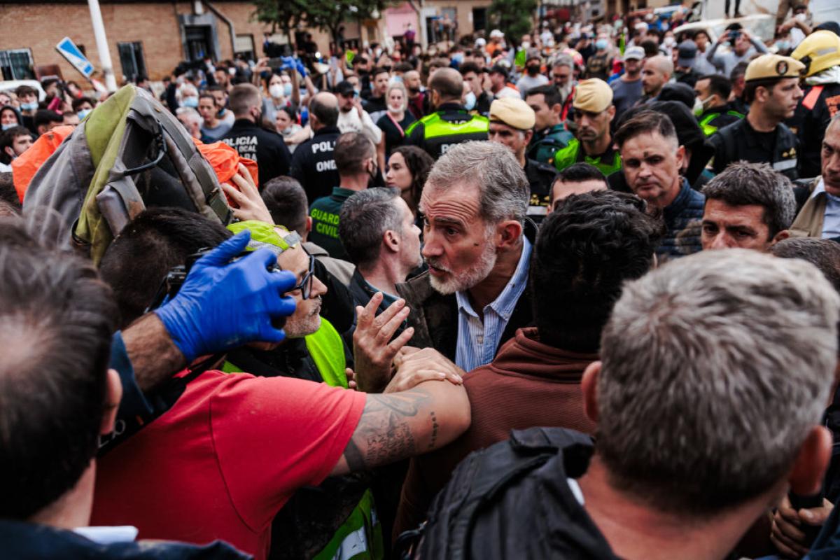 Estos, sin embargo, han sido recibidos entre gritos de "fuera", "asesinos" y lanzamiento de barro a su llegada a las calles céntricas de Paiporta, la denominada "zona cero" de la DANA. A pesar de ello, los monarcas han tratado de hablar con algunos de los voluntarios y habitantes del lugar que se han acercado a ellos.