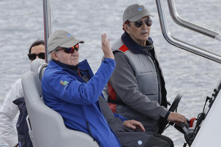 Al igual que en la prueba del mes de abril, aunque en aquella ocasión fue por un catarro, el rey emérito no ha salido a navegar a bordo del Bribón por las duras condiciones de viento en la Ría de Pontevedra.