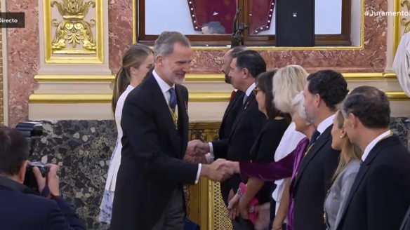 La familia real son recibidos por los presidentes del Congreso y el Senado y saludan al presidente del Tribunal Constitucional, Cándido Conde Pumpido, y del Consejo General del Poder Judicial, el vocal Vicente Guilarte. Tras esto, en el Salón de los Pasos Perdidos, saludan a los miembros de las Mesas del Congreso y del Senado.