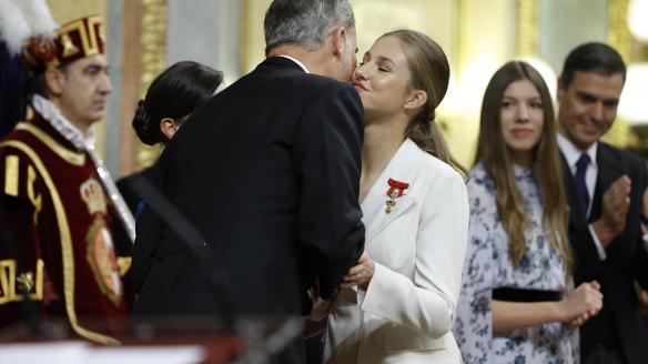 También, ha recordado la jura de su padre, Felipe VI, en 1986 y el contexto histórico que vivía España entonces. "Este año se puso en marcha el servicio universal de sanidad y la educación pública y gratuita fue accesible para todos y para todas", ha recalcado y ha rememorado eventos históricos como los JJOO de Barcelona en 1992. Además, ha definido a Leonor como una mujer joven, "representante de su tiempo". "Ser una mujer joven en la España de hoy como es la princesa de Asturias es saber que enfrentarse al mundo es enfrentar a toda una serie de desafíos", ha señalado y ha citado al poeta valenciano Vicent Andrés Estellés: "Porque la democracia no es otra cosa, señoras y señores, que el poder del pueblo".