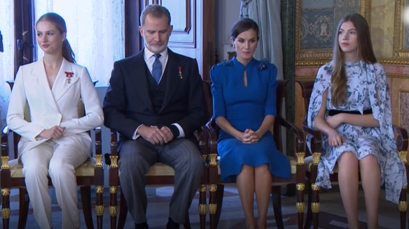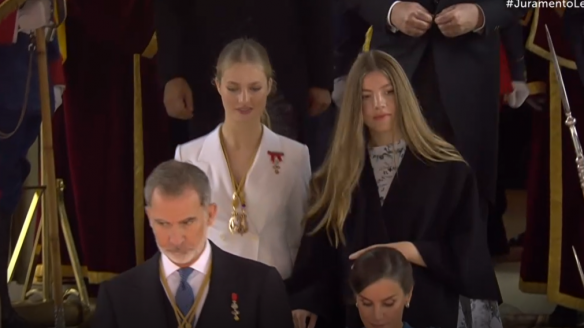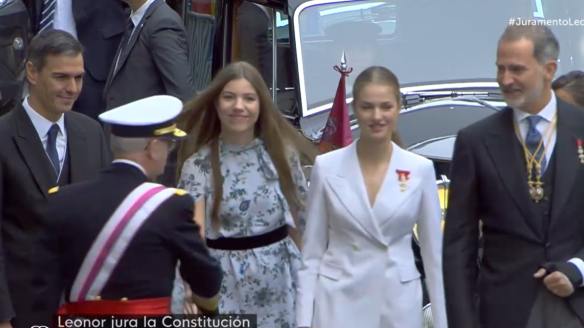 Leonor ya está lista junto a sus padres, los reyes Felipe y Letizia, y su hermana la infanta Sofía. Para dar comienzo al acto, intervendrá el presidente del Gobierno en funciones, Pedro Sánchez.