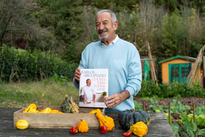 Cocineros de éxito hay muchos, pero como Karlos Arguiñano no hay ninguno. A sus 77 años, una edad a la que la mayoría de la gente está jubilada y disfruta de su merecido retiro, el vasco sigue al pie del cañón no con uno, sino con varios proyectos. Día tras día se mete en las casas de los telespectadores con su programa Cocina Abierta de Antena 3, del que se encarga su productora, Bainet, y cada noviembre lanza un libro de recetas con Planeta, editorial que apostó por él y que tiene claro que ya no le suelta.