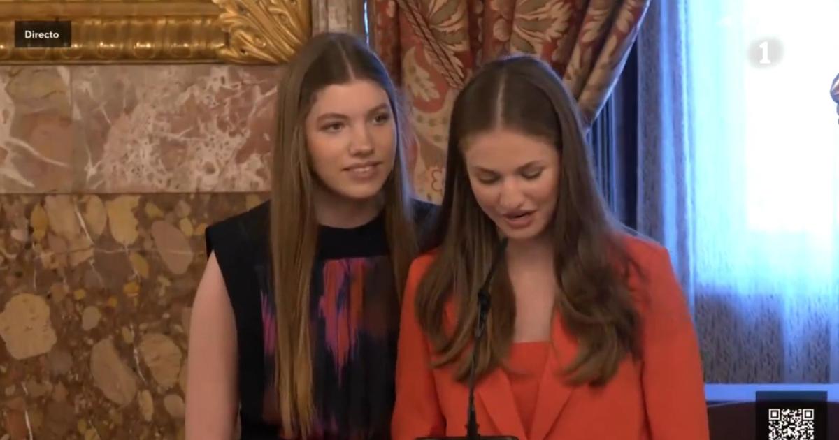"Y la infanta Sofía está al fondo y la princesa también está al fondo", agregó señalando a sus hijas, sentadas cada una en sendas cabeceras. "Queremos que todos estén en el mismo plano", ha recalcado el monarca, mientras las cámaras enfocaban a sus hijas, que expresaban gestos de ternura por las palabras de su padre.