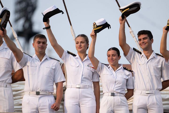 La princesa acudió junto a una veintena de compañeros guardiamarinas del buque, vestidos todos con su uniforme blanco, y no se perdieron detalle de un concierto donde pudieron escucharse piezas de Manuel de Falla y Joaquín Turina, zarzuelas de Manuel Plenella y José Serrano y hasta un vals de Maurice Ravel, todo envuelto en un aire muy festivo.