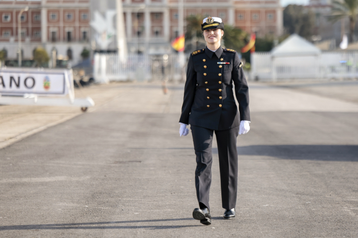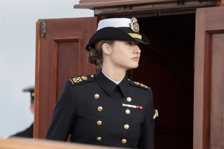 A las 16.10 horas de esta tarde, vestida con el uniforme de siete botones, la princesa ha sido la primera guardiamarina en subir a bordo del buque, atracado desde esta mañana en el puerto de Cádiz.
