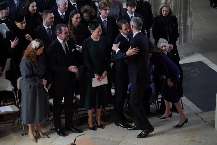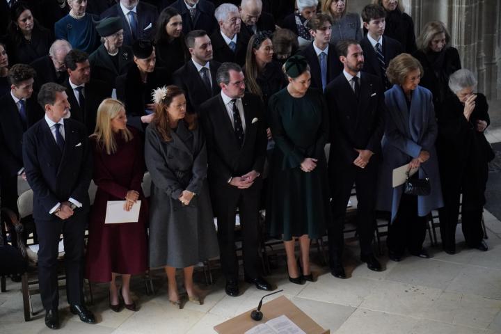 Por su parte, la reina Sofía se ha sentado en primera fila al ser familia directa del antiguo monarca griego. La emérita estaba junto a su hermana Irene, sus sobrinos y su cuñada, la Ana María de Grecia.