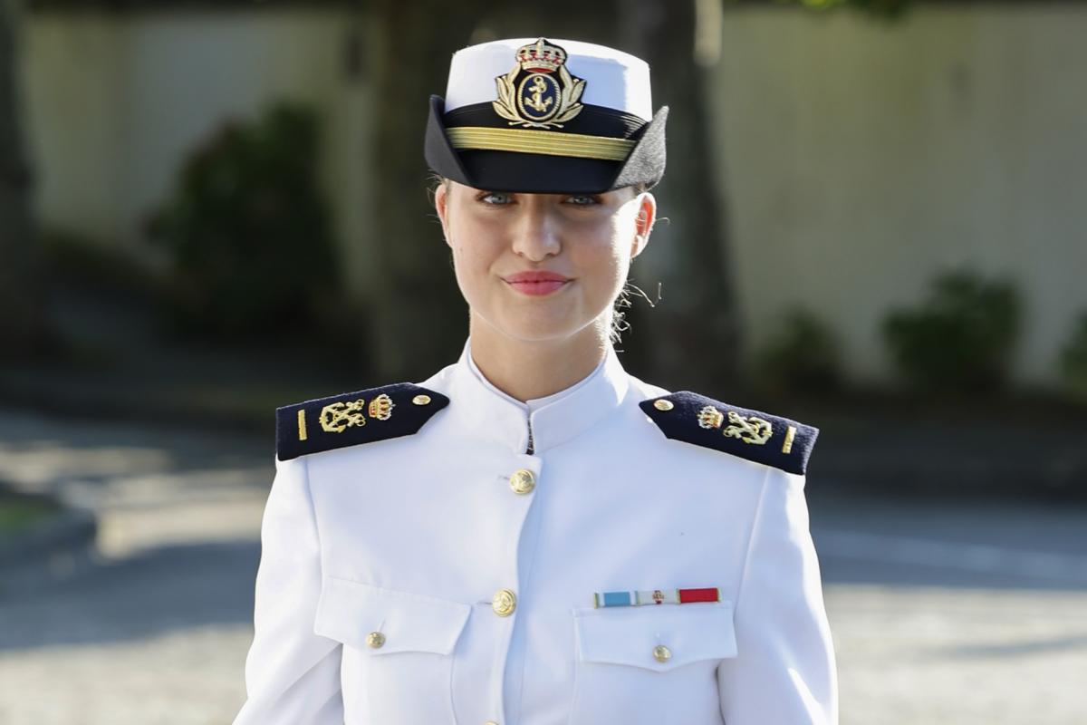La heredera al trono llevaba, en concreto, el uniforme de la Armada de especial relevancia de modalidad B con galones de guardiamarina de primero y varias distinciones. Entre ellas figuraba la Gran Cruz del Mérito Militar con distintivo blanco que le impuso su padre, Felipe VI después de terminar su formación en el Ejército de Tierra.