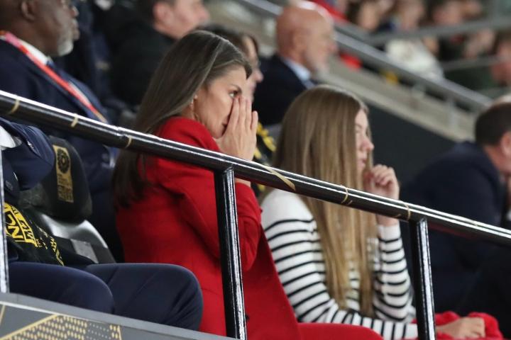 España ya es campeona del mundo. Después de los 13 minutos de descuento, la árbitra ha puesto fin a un encuentro en el que las españolas se han mostrado claramente superiores a sus rivales. Y, tras el mismo, Letizia ha saldado la cuenta pendiente que tenía con el fútbol femenino. Ha acudido a la entrega de medallas y, al igual que la infanta Sofía, ha celebrado la victoria junto a las jugadoras.