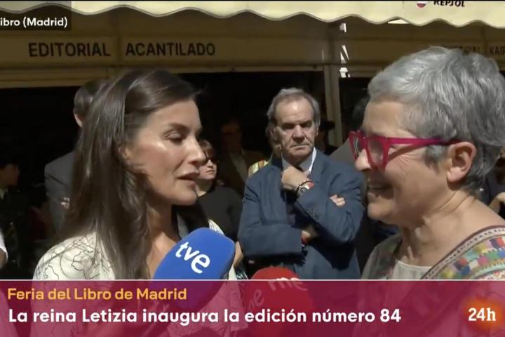 Además de hacer una entrevista improvisada a la directora de la feria, Letizia también se ha interesado por el trabajo y la cobertura de RTVE durante estos días de literatura, interpelando a una de las reporteras de la televisión pública.