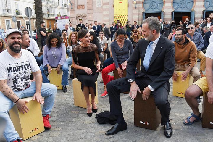 Los reyes Felipe y Letizia protagonizaron este lunes en Cádiz uno de los momentos más insólitos que se les recuerda. Aprovechando su estancia en Cádiz para participar en diversos actos con motivo del Congreso de la Lengua, se sumaron a una "cajoneada" popular a las puertas del Gran Teatro Falla.