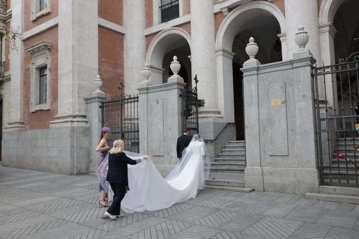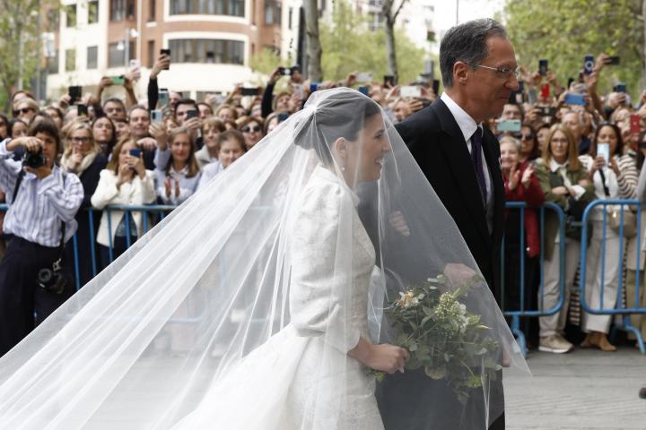 Ha sido, como marca la costumbre, la última en llegar. Se trata de Teresa Urquijo, que contrae este sábado matrimonio con el alcalde de Madrid, José Luis Martínez Almeida. Del aspecto que luciría la joven, de 27 años, se conocían en los días previos algunos detalles, pero no ha sido hasta su llegada a la parroquia.