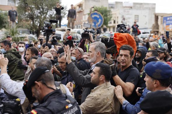 La comitiva de los reyes, Felipe y Letizia, junto al presidente del Gobierno, Pedro Sánchez y el president de la Generalitat, Carlos Mazón, ha sido recibida entre gritos de "fuera", "asesinos" y lanzamiento de barro a su llegada a las calles céntricas de Paiporta, uno de los lugares más afectados por las inundaciones que ha motivado la DANA. Finalmente, la visita ha quedado suspendida y la que tenían programada a Chiva, también.