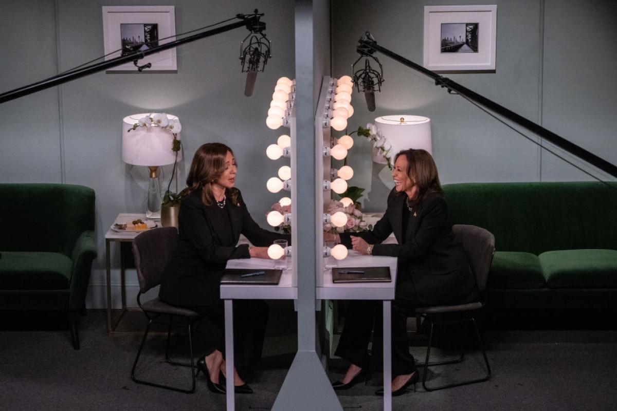 Kamala Harris se sienta ante su reflejo en 'Saturday Night Live' y hace un chiste sobre este momento de Trump