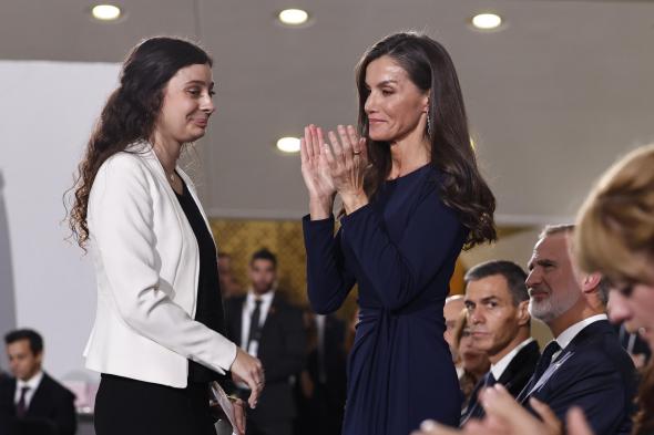 Pero uno de los gestos más bonitos de la reina Letizia lo ha tenido con Andrea Ferrari, hija de Eva María, que falleció al salir del trabajo. Antes de que la joven subiese al escenario, Letizia, desde su asiento, le ha tomado de la mano y le ha dirigido varias miradas de apoyo.