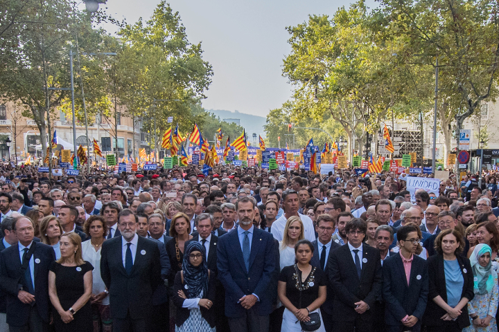 No es habitual que el jefe del Estado participe en alguna manifestación dada la neutralidad política e ideológica que debe guardar la Corona, pero Felipe VI sí quiso estar presente en la manifestación que se celebró en Barcelona contra los atentados de La Rambla y Cambrils del 17 de agosto de 2017.