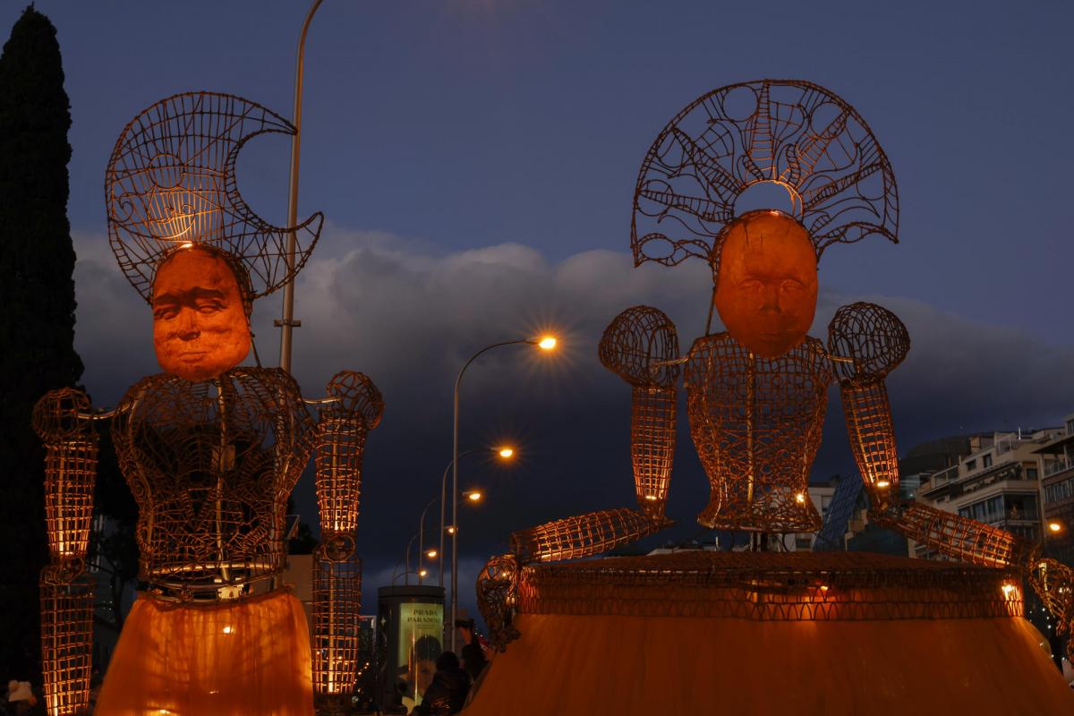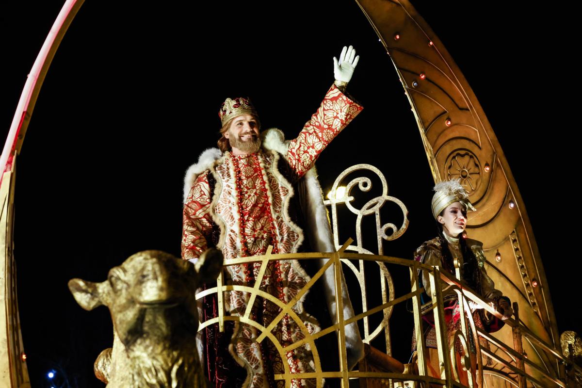 Una enorme estrella de luz ha precedido a los Reyes Magos, guiando sus carrozas durante todo el recorrido. La de Melchor, el rey de mayor edad, este año está recubierta de oro y ha sido la primera en hacer el multitudinario paseo.