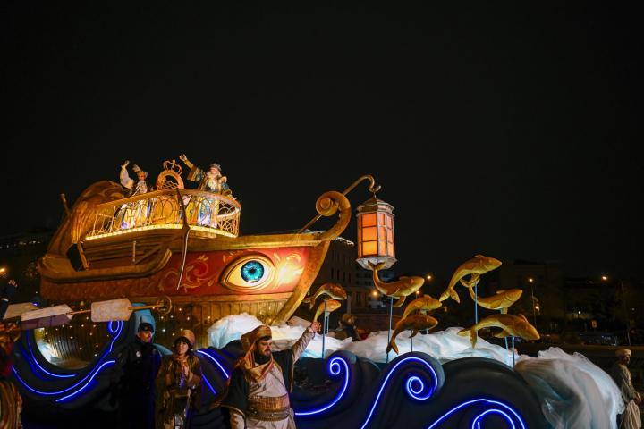 Todo ello en una marcha que, en 2025, ha abierto una estrella gigante y se ha celebrado bajo el lema "La noche de los deseos cumplidos", tomando inspiración de los juguetes victorianos. Ha empezado puntual y apenas han caído unas gotas al comienzo de la tarde y con las primeras filas de espectadoras abarrotadas de niños y niñas. Eso sí, tanto niños como mayores han sido precavidos y han acudido a la cita bien abrigados y con chubasqueros, además de con paraguas. Aunque estos últimos se han tornado habituales en este tipo de desfiles.