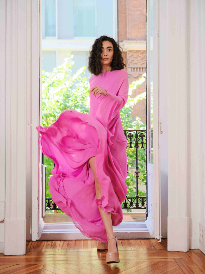 Clásico, plagado de plantas y con las distintivas molduras del centro de la capital, Duyos recibe a El HuffPost en su atelier, al que se mudaron después de que su anterior hogar fuera comprado por un fondo de inversión. Sus paredes acogen en esta ocasión una sesión de fotos en el marco de su colaboración con Fujifilm.