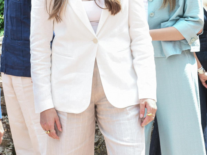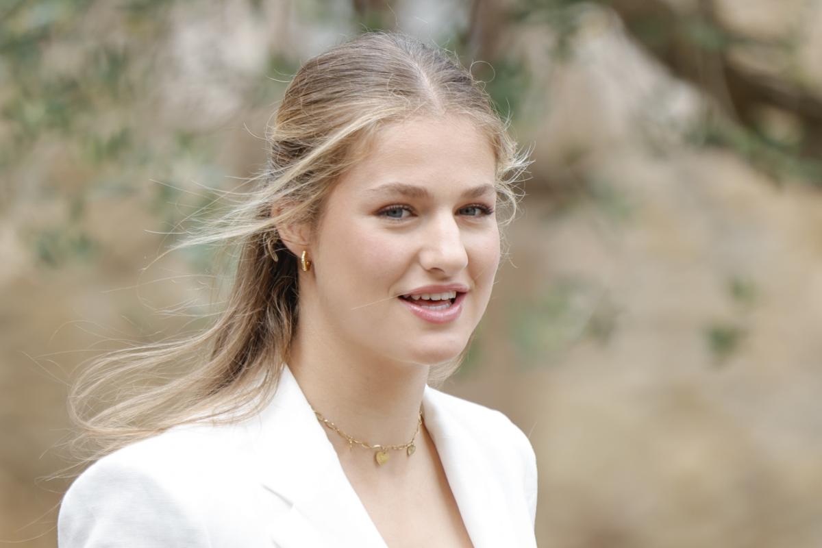 Las joyas de Leonor son piezas del estilo habitual entre las jóvenes de su edad y perfectas especialmente para los meses de verano. La princesa ha dado todo el protagonismo a sus accesorios para elevar el look al elegir un conjunto de americana blanca y pantalones de lino beige.