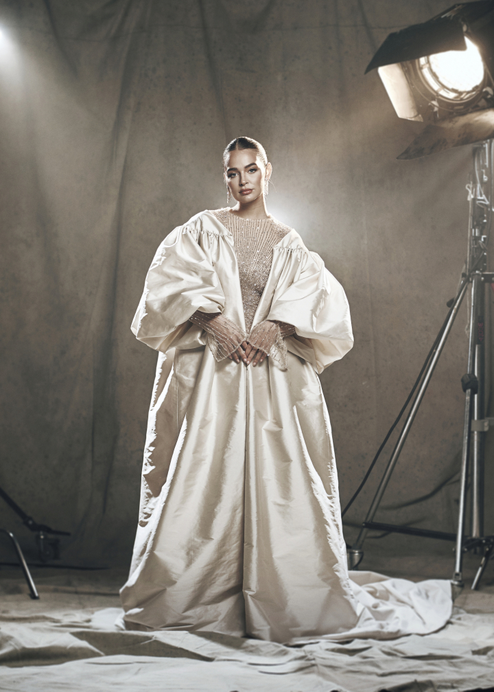 Según informan, el vestido está confeccionado a medida a partir de tul y bordado en pedrería, además de contar con un degradado radial desde la cintura hasta el resto de la silueta. "Las mangas son largas y desde el nacimiento del hombro incluyen el mismo diseño radial que la cintura, proporcionando distintos puntos de luz y sofisticación a la propuesta", señalan y añaden que para añadir un toque "más escénico al look" se ha optado por un maxi abrigo, al igual que ha hecho en otras ocasiones Pedroche.