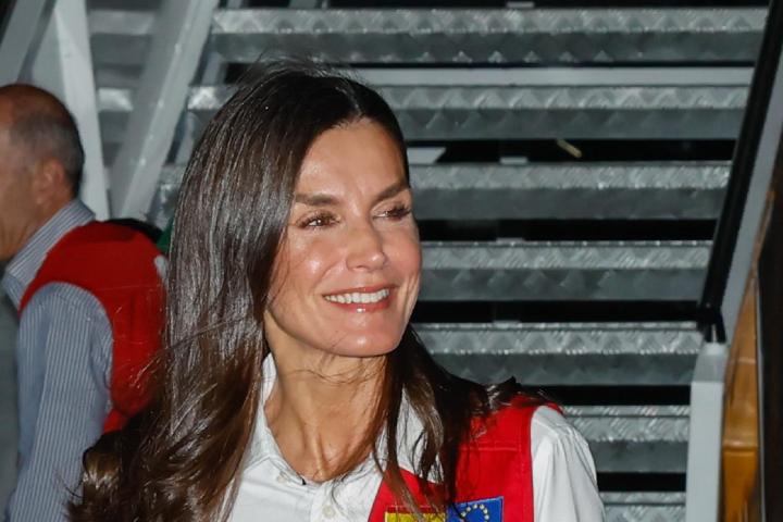Doña Letizia, que fue recibida por Verónica Alcocer, la mujer del presidente Gustavo Petro, bajó del avión ataviada con una camisa blanca, el chaleco rojo de los cooperantes españoles, un pantalón cargo y unas botas Panama Jack.