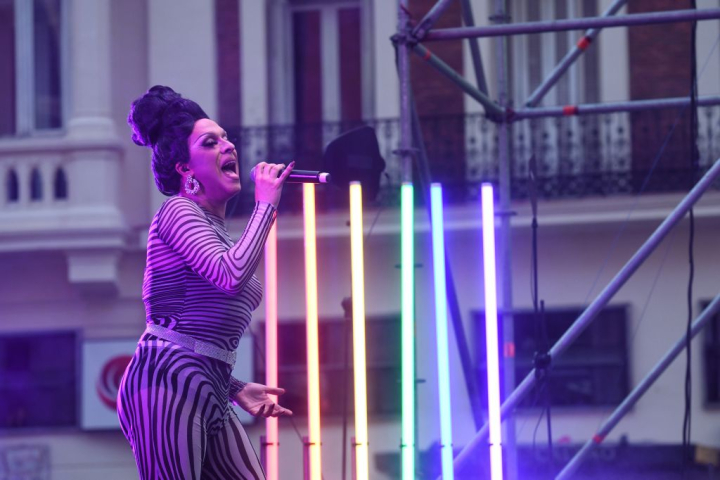 Con una presencia despampanante y rezumando alegría, dos artistas drag recorren las principales calles del barrio de Chueca 'captando' clientela para uno de los locales abiertos en la zona. Es sábado por la noche previo al Orgullo, la música se cuela por las puertas semiabiertas de los 'garitos' y el bullicio es notable. Pero la presencia de ambas no pasa inadvertida: subidas a unos zapatos de tacón infinito y con 'pelucones' de diámetro considerable, las dos travestis reparten flyers con una amplia sonrisa mientras bromean con quienes les piden una foto.