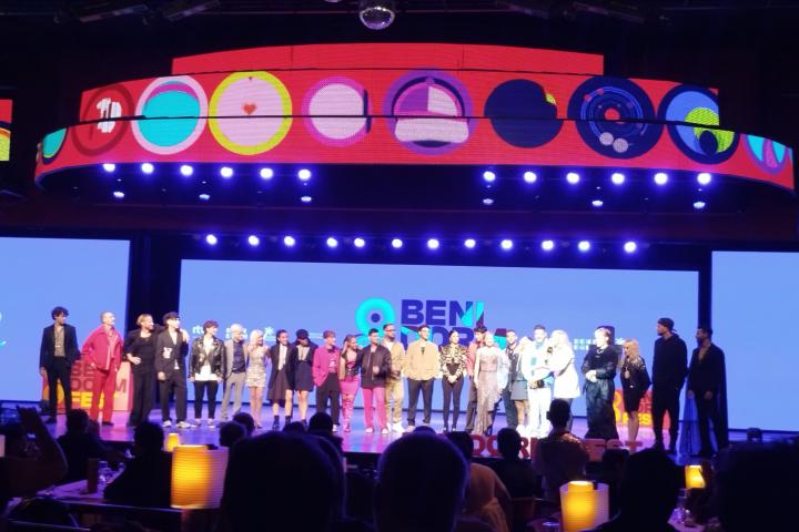 Los 16 participantes del Benidorm Fest 'abrieron' este domingo la tercera edición del concurso con una animada alfombra naranja en la famosa ciudad alicantina.
